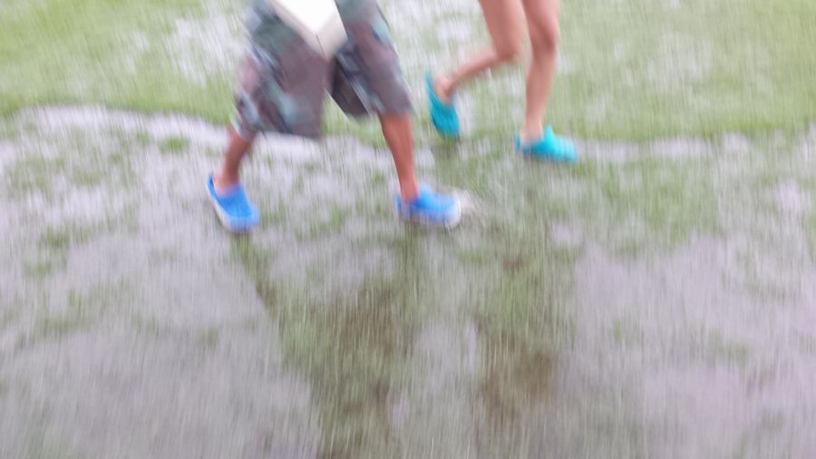親水公園が名前通り水浸しになっています。