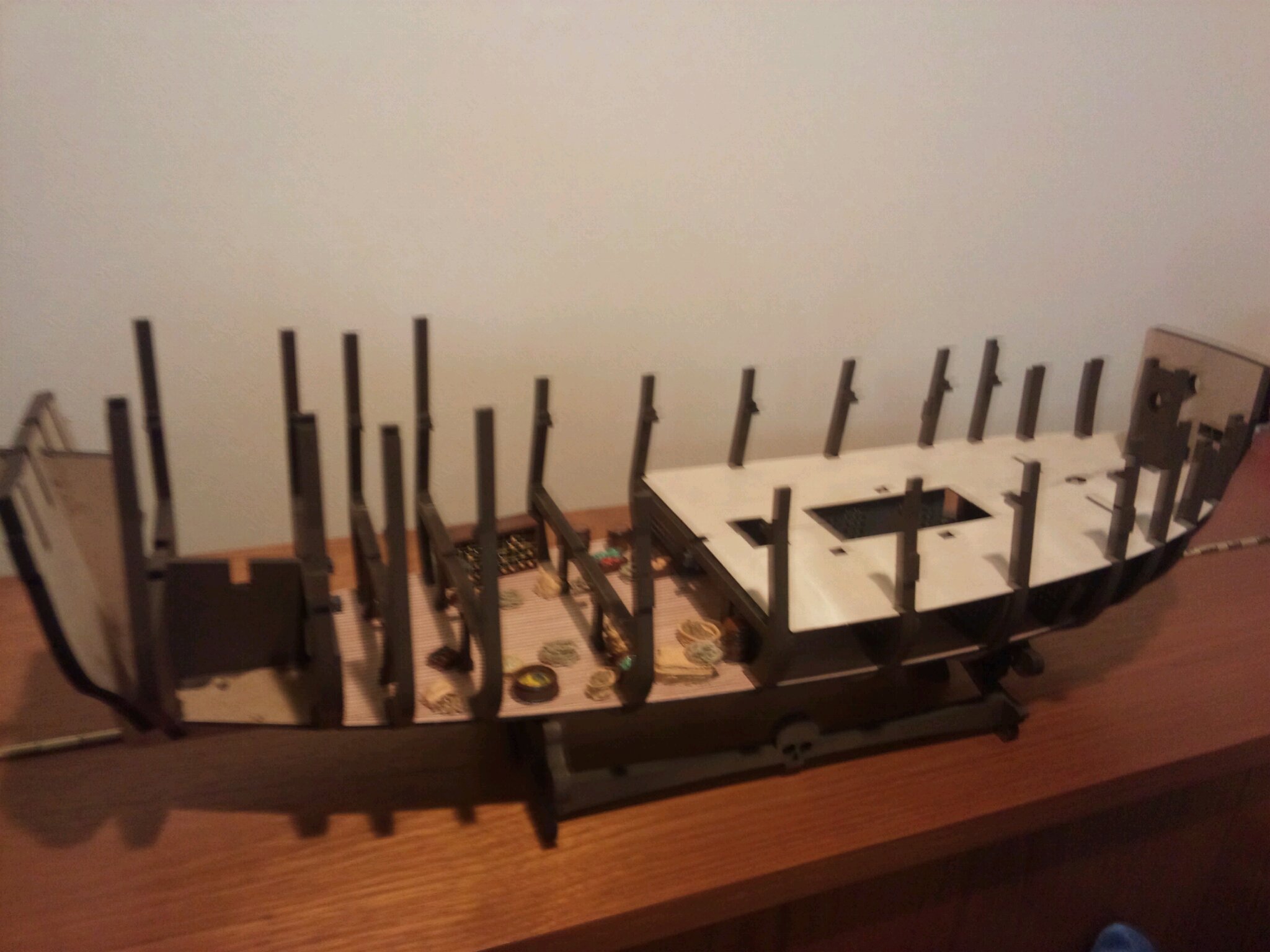 http://www.astroarts.co.jp/alacarte/2012/201203/0311/index-j.shtml 寒い夜があるお蔭で、綺麗な夜空を見ることが出来ます。 もしかすると中国から飛んでくる黄砂が邪魔をすることもあるかもしれませんが、 上のサイトの画像のままに今夜の石部の夜空に見ることができました。 ここ2~3日良いお天気が続きそうなので、風邪をひかないように、 夜の空をお楽しみください。 アップしたとたんに、りゅうくんから海賊船(ブラックパール)の 第2報が届きました。 現在ほぼ20巻が刊行されているようです。 船底に牢屋と各種備品を設置しました。 この後、その上に中甲板を設置するのでこの部分は見えなくなるそうです。 牢屋の様子 備品が並んできます かなりリアルなので見えなくなるのはmottainaiですね。 SLはほとんど進捗していません。 部品は5号分くらいのストックがあります。 |