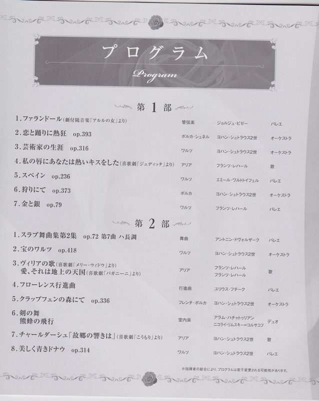 1部・2部で15曲、アンコール3曲で、おなじみの曲がかなりありますね。
