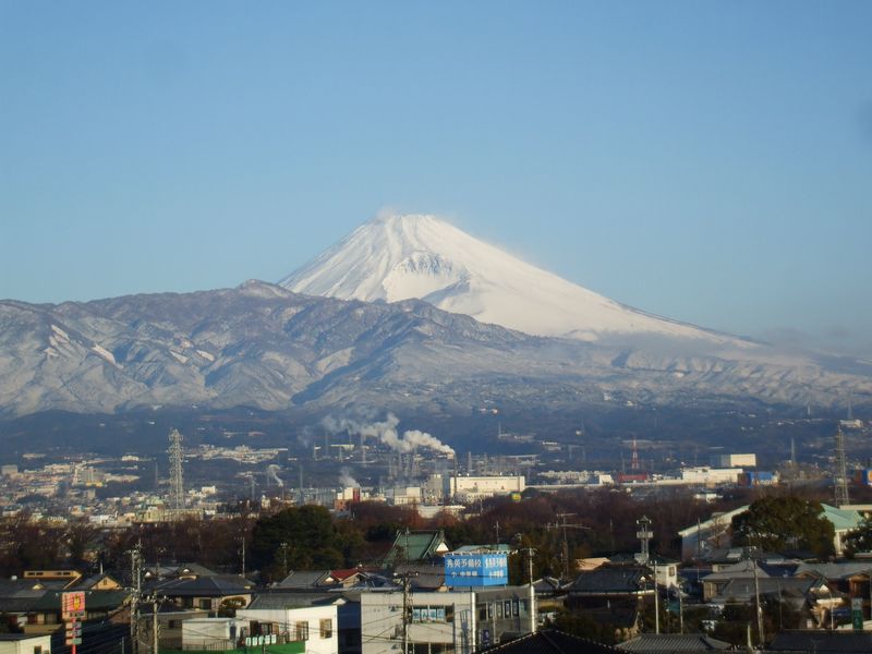 目の前に晴天の下、雪をかぶった富士山がで~~ん。