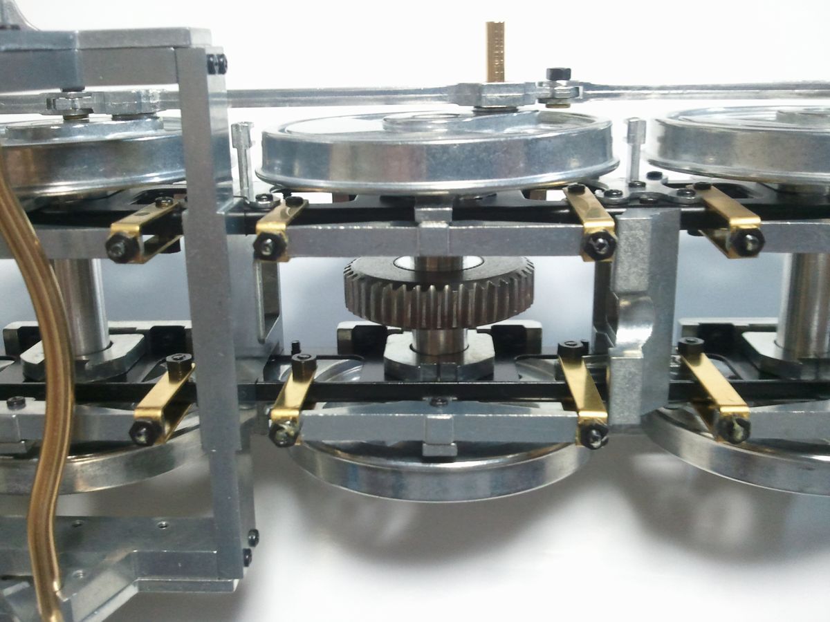 真ん中の歯車は実機にはありません。