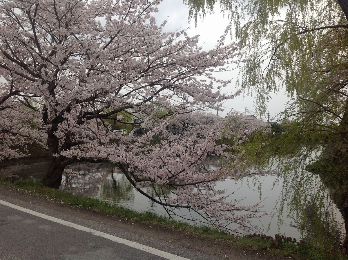 曇りの夕方のipad3からのお堀端です。
