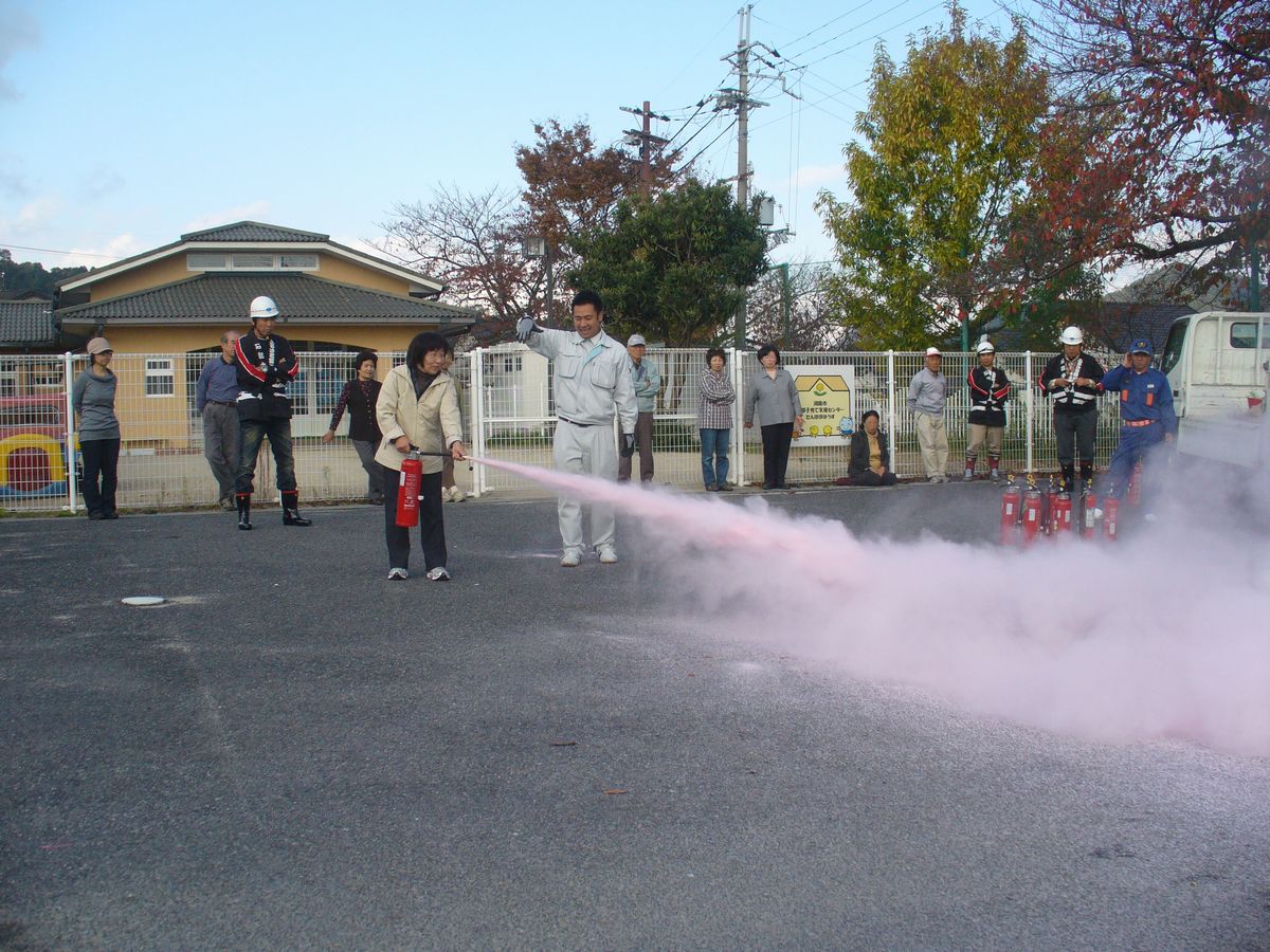 震災のVTRを見て、消火器の使い方を教えてもらいました。