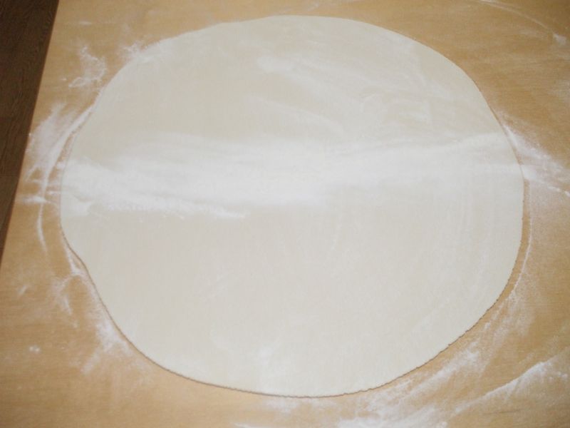 捏ねて、丸くして、手で伸ばして、短いのし棒で伸ばしたのがこれです。
