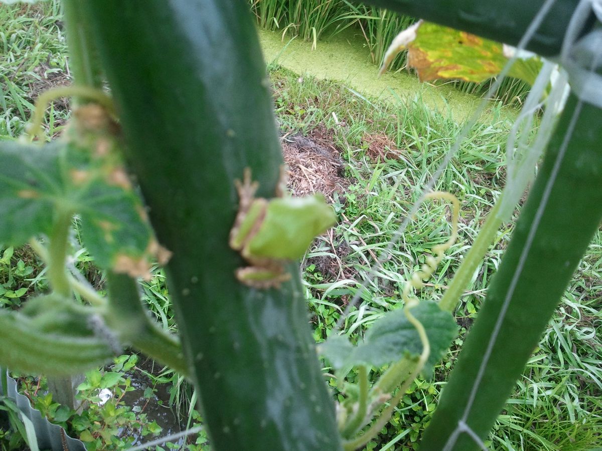 最後の主役はきゅうりより、カエルでしたがややピンぼけになりました。